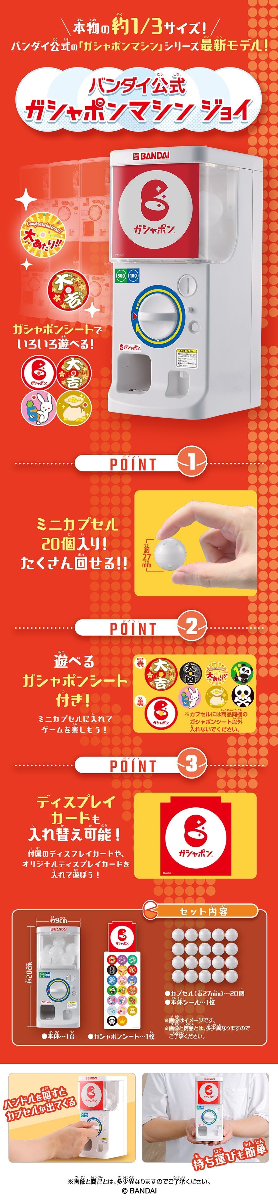 到貨日:下單後約3星期到港 可以在家實現扭蛋自由啦✨日本官方1/3扭蛋機😍💰 買兩部仲可以自由組成你專屬既家中🏠獨有扭蛋牆 ❤️哎呀~日本街頭扭唔夠?直接將呢款BANDAI官方家用迷你扭蛋機搬返屋企啦! ❤️扭既時候真係會卡卡聲響‼️ ❤️發揮創意💡 DIY運勢卡(大吉/小吉🤣),感覺超kawaii~ ❤️尺寸細細部(20×9cm),完美適合放係香港細屋企 ❤️跟機有20個專用扭蛋膠囊,尺寸直徑約27mm既迷你尺寸 ❤️可以將自己喜歡既野放入去扭🫶🏻 ❤️亦都可以變身為獎勵小朋友既禮物🎁默書 考試拎高分可以扭一扭神秘禮物🃏 ❤️兒童生日禮物/聖誕交換首選! 尺寸:20X9CM 套裝包括:本體,專用膠囊20個 #扭蛋 #扭蛋機 #扭蛋控 #扭蛋代購 #扭蛋玩具 #日本扭蛋 #扭蛋星球 #扭蛋研究室 #gacha #gachalife #gachacommunity