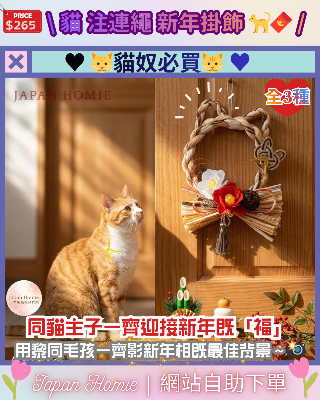 🛬到貨日:2026年1月下旬到港 ***因日本可訂購數量極有限,如未能成功代購,將安排全數退回,請慎重下單*** 🐱🧧 日本直送|貓咪注連繩(Shimenawa)新年掛飾 🧧🐱 🇯🇵 日本傳統正月裝飾 × 超可愛貓咪設計 迎新年一定要有好意頭 ✨ 呢款 貓咪造型注連繩 寓意 🎍 招福・辟邪・守護家宅 加埋貓貓元素,貓奴見到一定心心眼 😍 🏠 掛喺門口/玄關/牆身都超有日本新年感 🎁 送俾貓奴朋友、新居入伙都好啱 📸 日系家居打卡必備! ✨ 特色重點: ✔ 日本正月傳統注連繩 ✔ 貓咪主題・開運設計 ✔ 日系手作感+高質感 ✔ 新年/賀年/家居裝飾首選 #貓貓精品 #貓精品 #貓精品店 #貓貓 #貓奴 #貓奴必備 #貓奴必買 #貓奴必看 #貓奴人生 #貓奴雜貨 #貓雜貨 #貓雜貨店 #貓精品代購 #貓星人 #貓咪 #貓禮物 #日本貓精品 #日本貓咪精品 #貓咪精品 #貓貓精品 #貓貓精品雜貨
