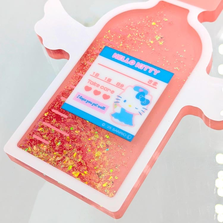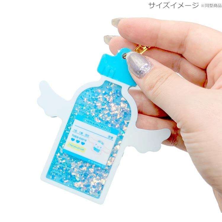 🛑更多日本sanrio精品: www.japanhomie.store/c/Sanrio貨品 透明藥水樽造型入面裝住閃閃亮片 ✨ 郁一郁就好似流沙咁,好療癒 🥹 兩邊仲有小天使翼,成件事都好靚 🤍 太陽底下仲會閃閃發光~ My Melody、Hello Kitty、 Cinnamoroll、Kuromi 每一款都用返角色代表色, 掛喺袋或者鎖匙位都好精緻 💫 見到會即刻心情好嗰種 💗 尺寸: 8.5 x 9.5 x 0.5 cm 材質: 壓克力,礦物油,蒸餾水,鋁,銅