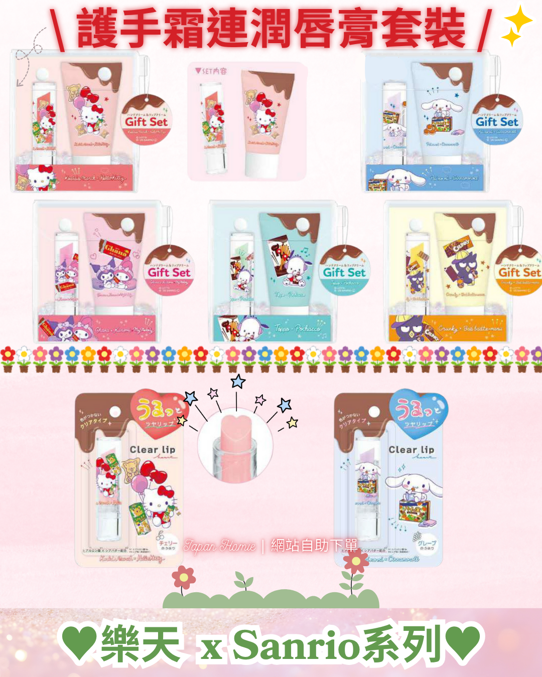 預訂 | 日本Sanrio x 樂天系列 護手霜連潤唇膏套裝 | 日本sanrio精品