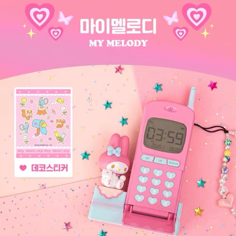 韓國Sanrio Melody Kuromi 復古手提電話坐枱電子鬧鐘 | melody 鬧鐘 | kuromi 鬧鐘