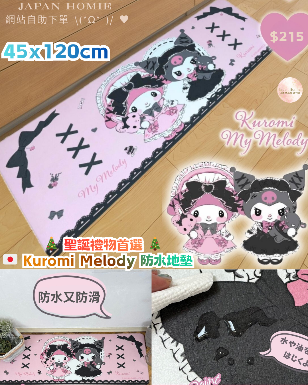 預訂 | 日本 Kuromi melody 廚房防水地墊 | KUROMI家用品 | KUROMI 廚房