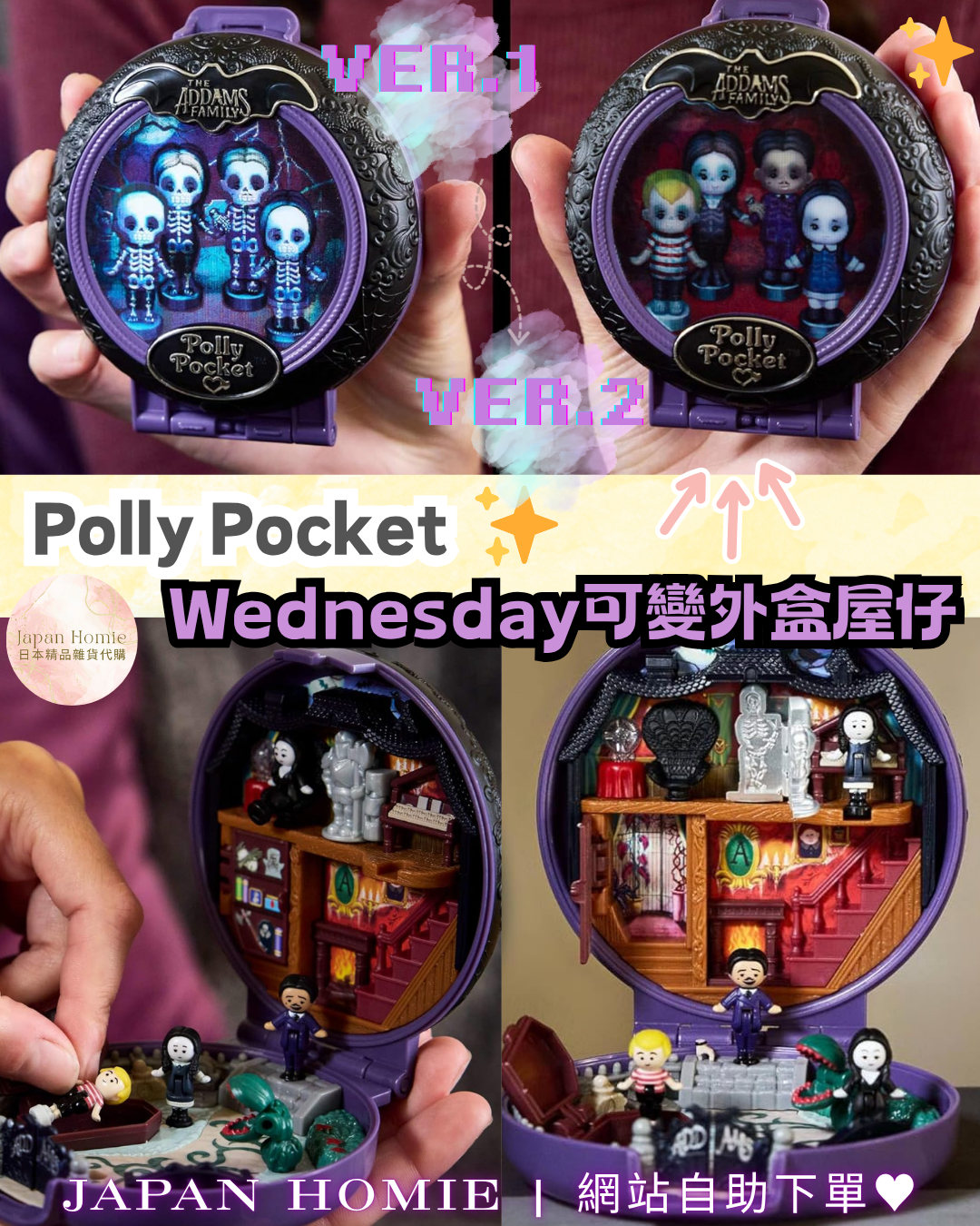 🛬到貨日:約2026年1月中到港 ⭐又就黎聖誕嚕 🖤【Polly Pocket × The Wednesday 聯乘款登場✨】 暗黑哥德風+童玩經典結合!Polly Pocket 今次同人氣美劇「The Wednesday」合作🖤🕷️,推出特別版微型人偶+配件套裝,收藏控/劇迷必入手! 🔹 精緻聯乘設計:以劇中經典場景/角色造型為靈感,添加細節配件,玩味十足。 🔹 外盒圖案仲會因應唔同觀賞角度而有所更改! 🔹 微型設計+互動配件,好適合打開即玩、擺放展示、影相打卡📸。 🔹 數量有限,錯過就買唔返了! 🔮 配件齊晒! 🎎 內附4隻角色人仔+1隻手仔 🪑 場景互動感十足! 📦 特別收藏盒包裝,適合送禮 or 收藏展示都一流~